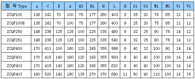 ZCQF型四氟自吸磁力泵外形安裝尺寸表: